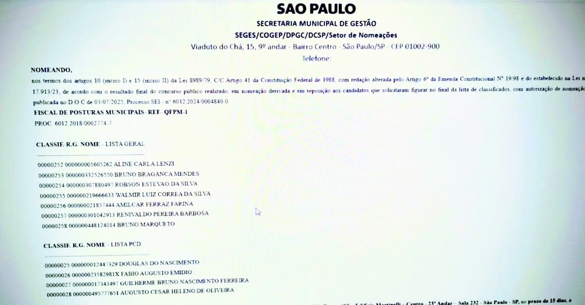 Informamos que foram nomeados mais 11 novos Fiscais de Posturas Municipais classificados no último concurso, chegando a um total de 315 pessoas.