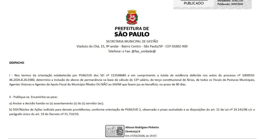 Conforme determinação da Justiça e luta do SAVIM o abono de permanência entrará na base de cálculo do décimo terceiro e do terço constitucional de férias para todos os Fiscais que já possuem o tempo de aposentadoria.