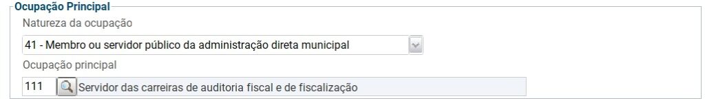 Ocupação Principal: Código 111 (Membro da carreira de auditoria fiscal e de fiscalização).